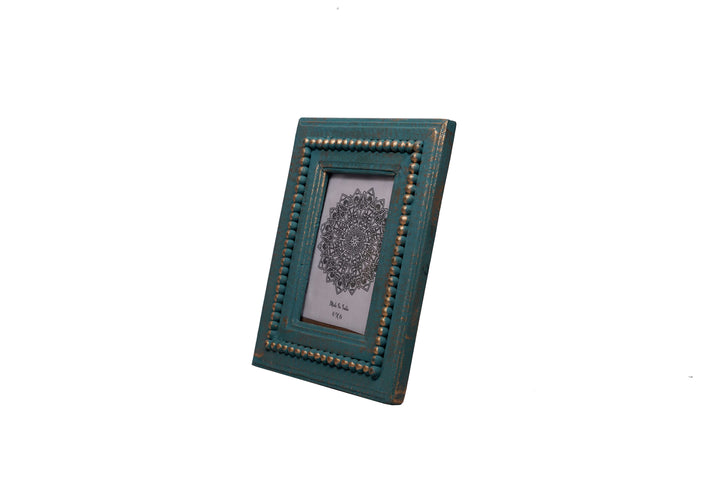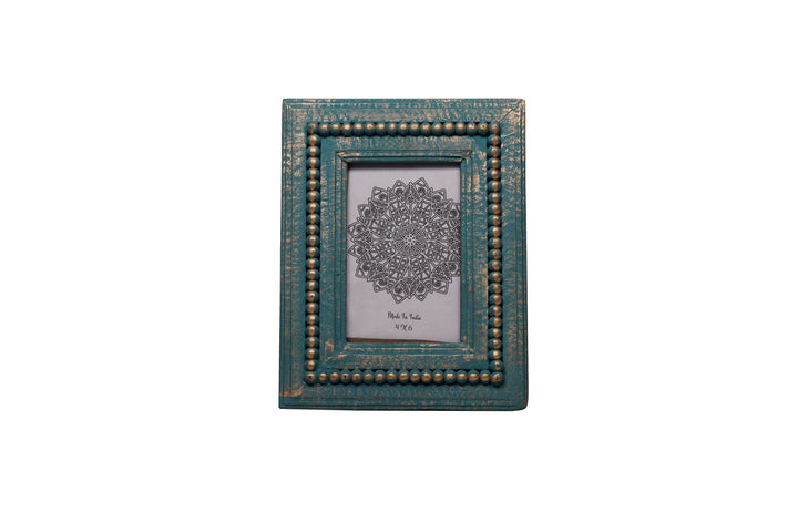 Mango Wood Carved Photo Frame - Rustic Green Finish