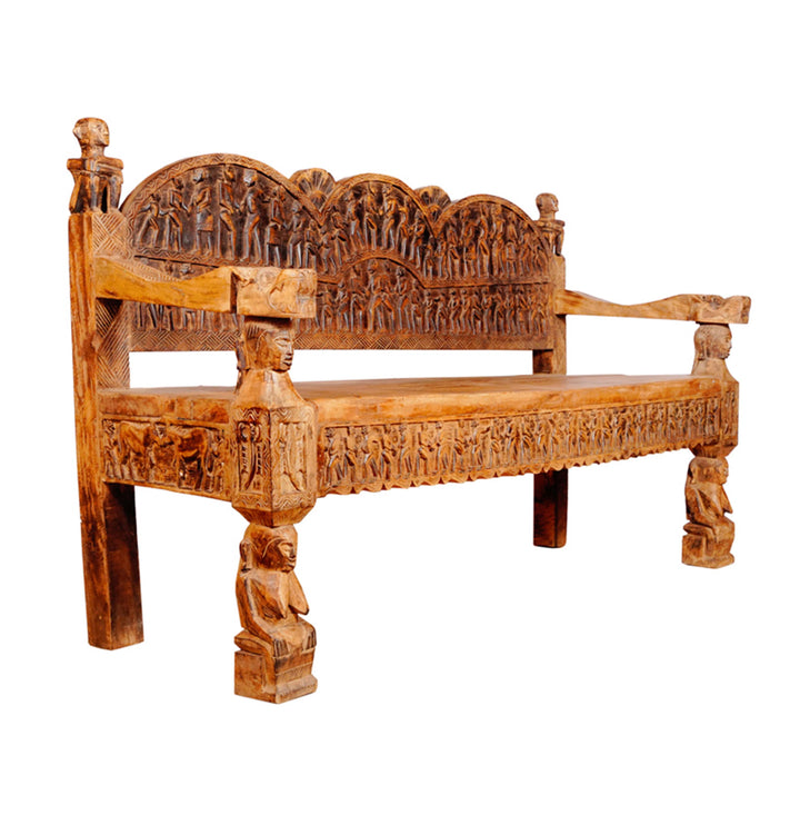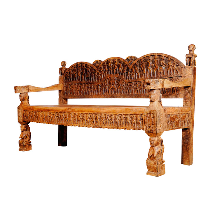 The Shraya three-seater Tharu sofa is an elegant fusion of artistry and comfort, featuring intricate wood carvings that evoke timeless craftsmanship. Made with premium materials, this sofa adds a touch of luxury and tradition to any space. The carved detailing enhances its aesthetic appeal, making it a statement piece in your living room. Perfect for those who appreciate both beauty and comfort.